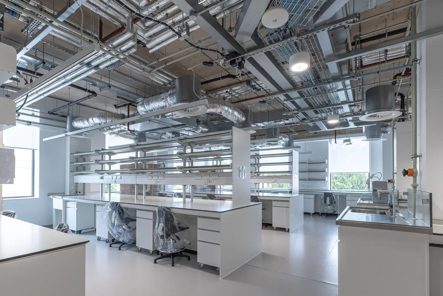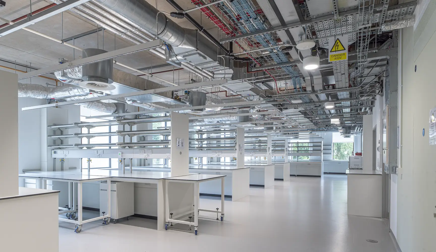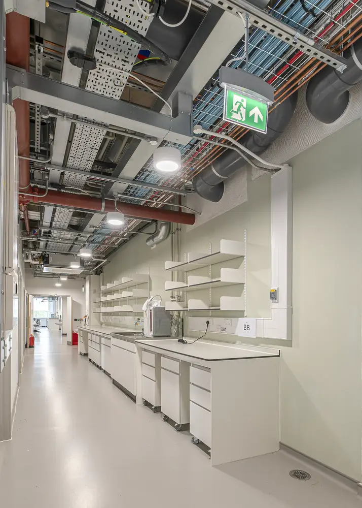 Rear-access luminaires are maintained from the void above so that the seal to the room is not disturbed. Sometimes a walk-on ceiling is installed so that all services can be maintained from above, and in this scenario load-bearing luminaires should be used.