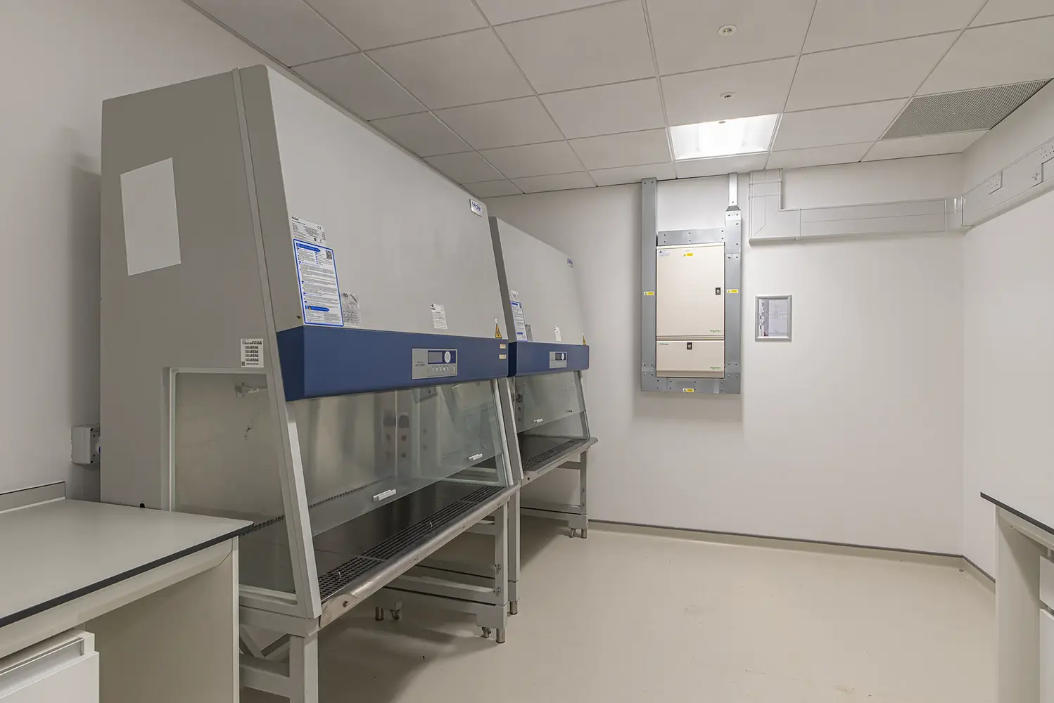 In ISO BS EN 14644 classes 2, 3 & 4 the operator does not enter the clean space because these are exclusively containment cabinets, where the operator uses robot arms or sealed glove inserts in the side of the cabinet.