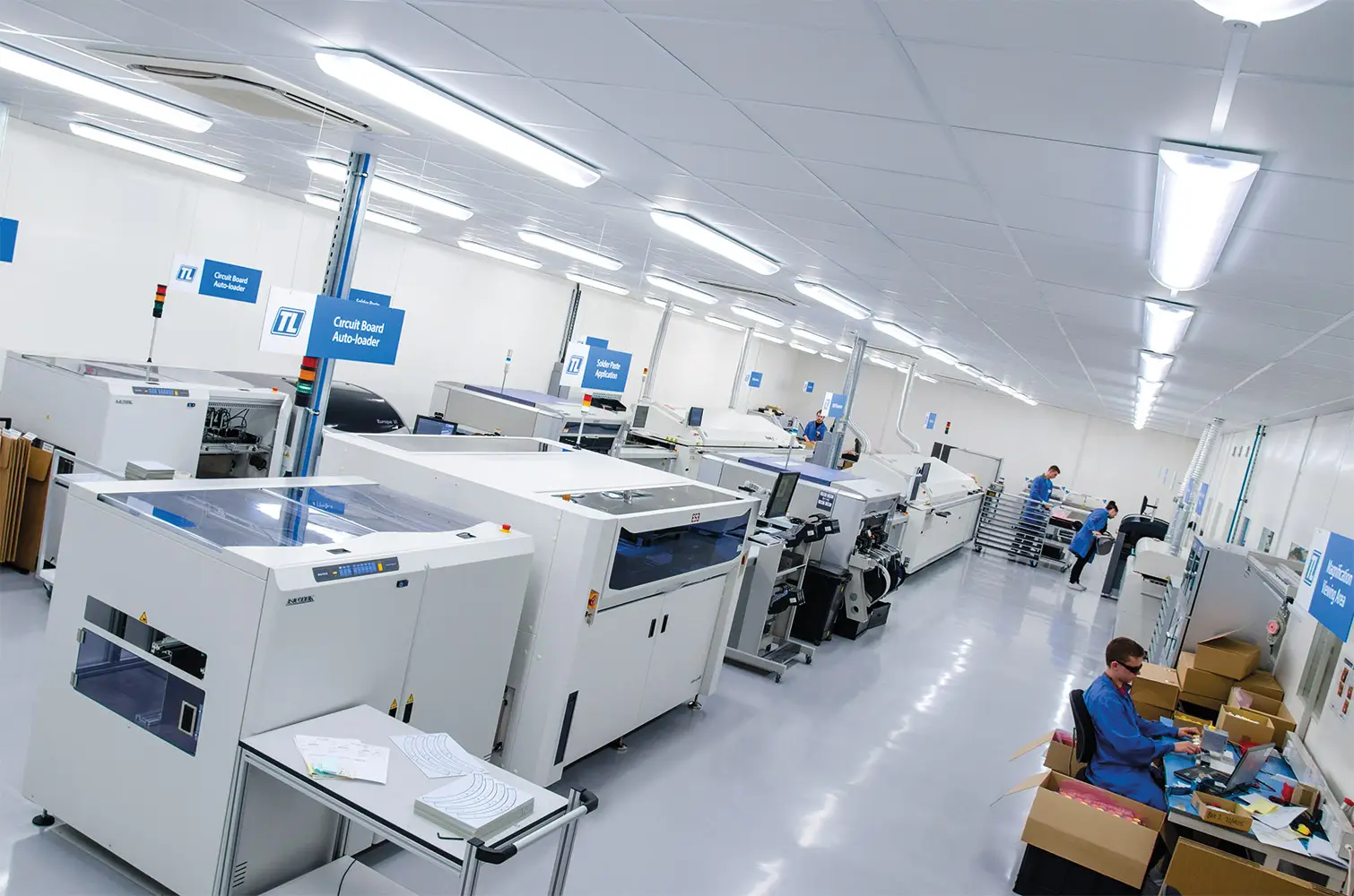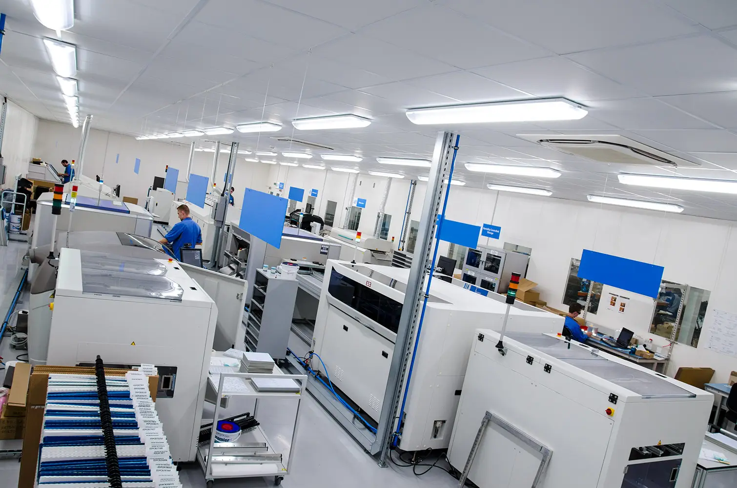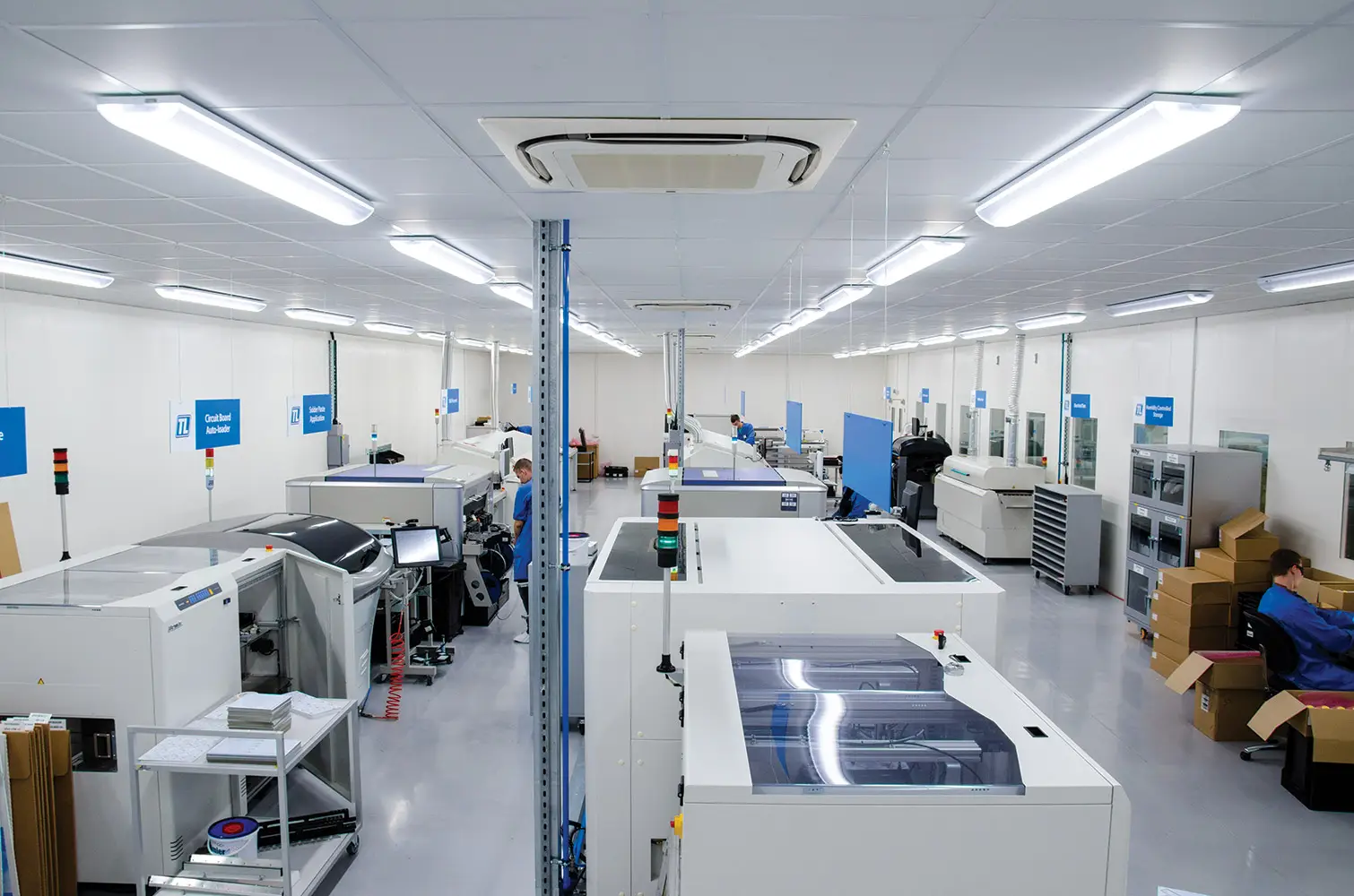 Electronic equipment manufacture involves precision placement of tiny components, so good quality glare-free lighting is essential.