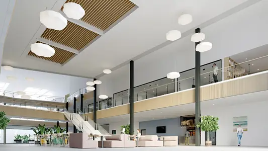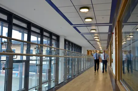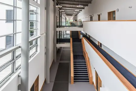 The Clara range has been used successfully in many circulation areas. The Clara 720 is ideal for stairwells and atria, and is often supplemented with wall-mounted Clara 360, Clara 180 or Clara 90 luminaires.