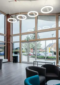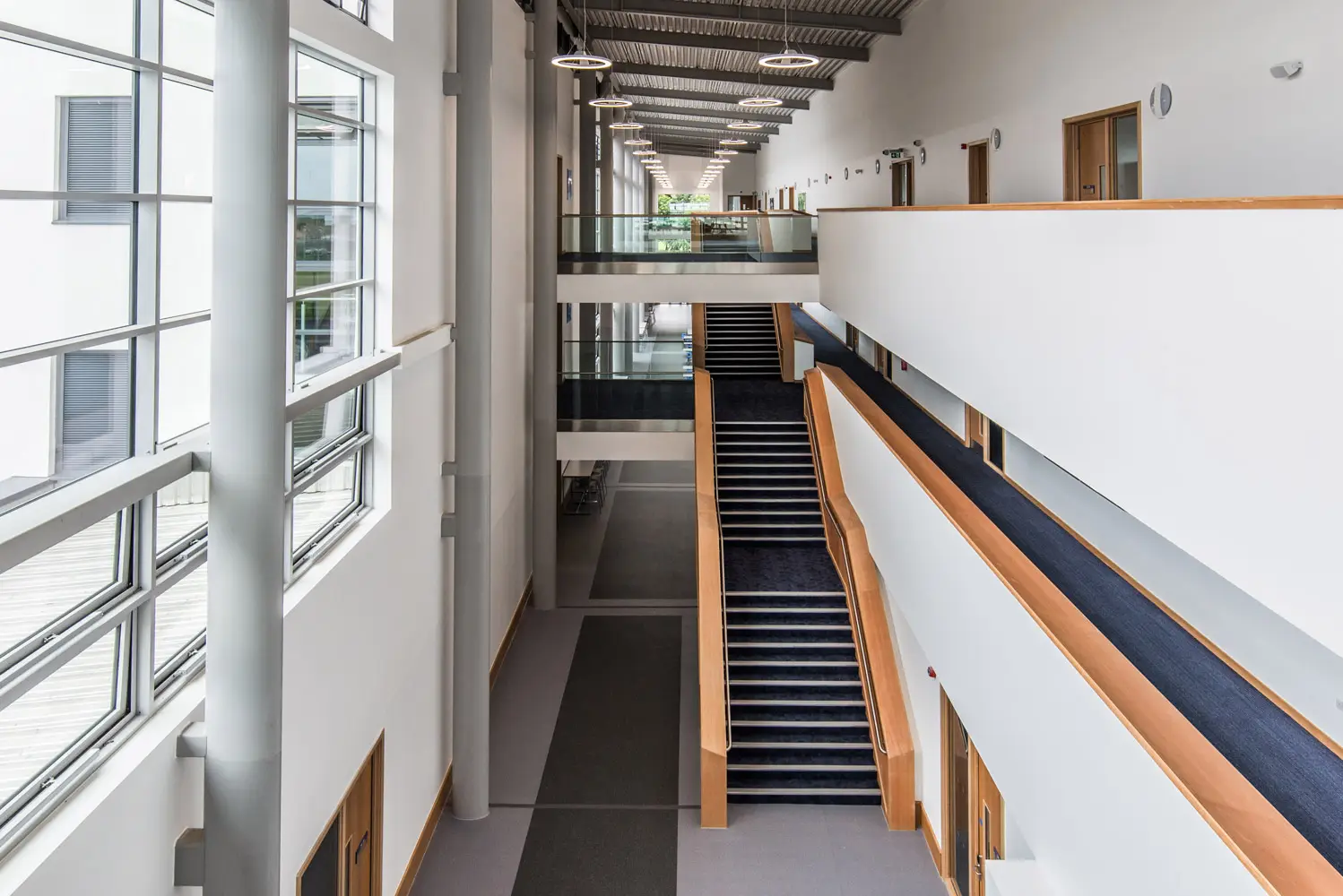 Stairwells and atria often benefit from large glazed areas to introduce daylight, so energy can be saved by automatically dimming and switching.