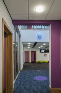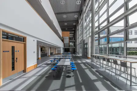 Circulation areas should enable people to find their way easily and safely through the building, even when they are unfamiliar with it. Corridors are used as social areas, for the display of student works and notices.