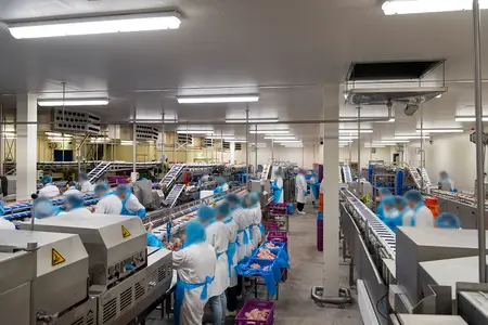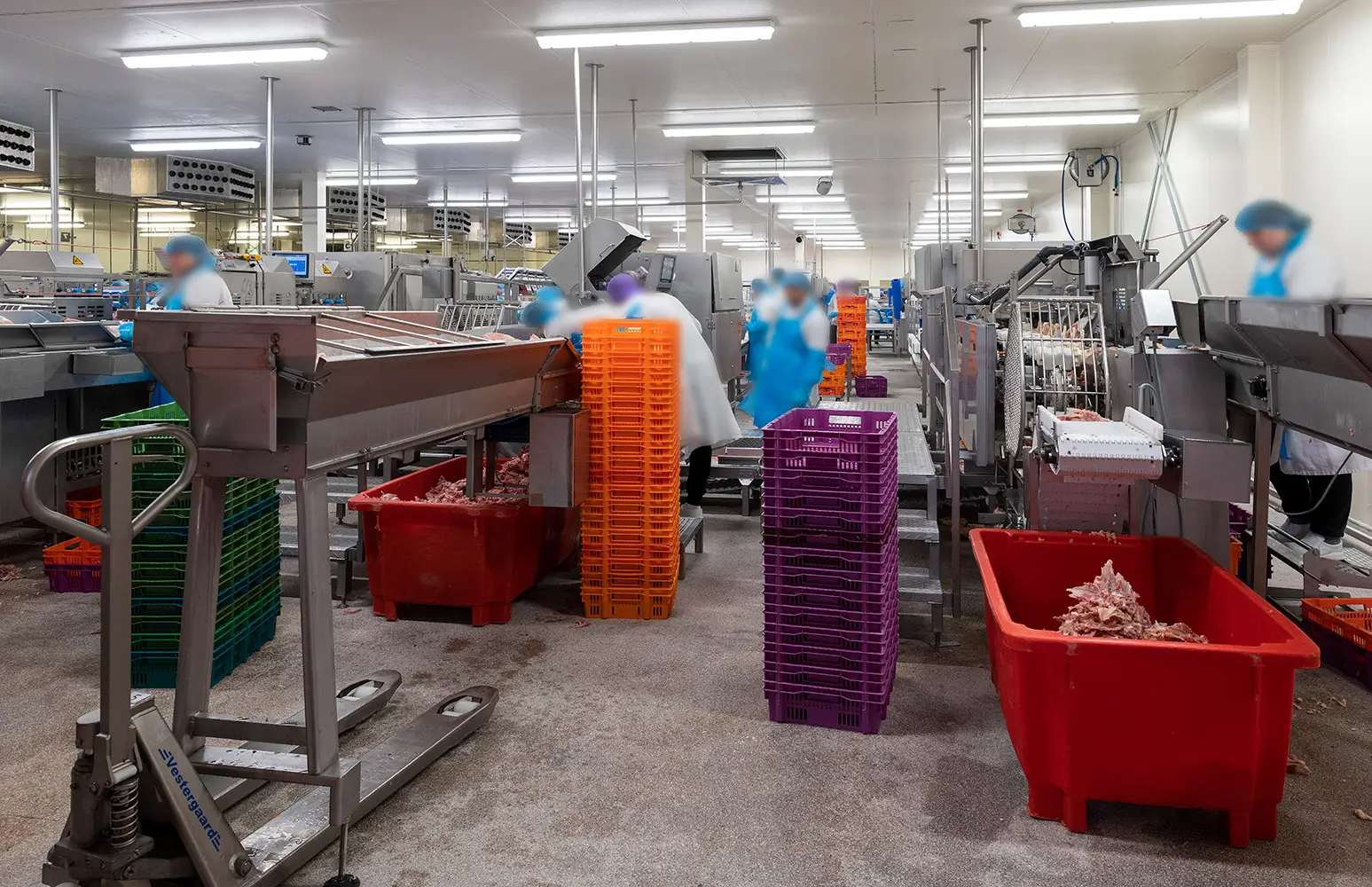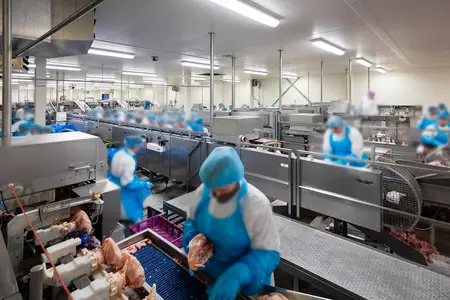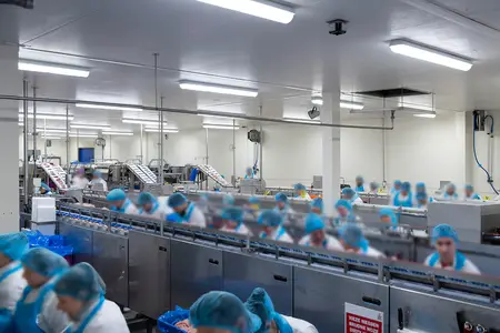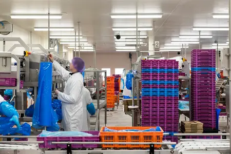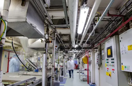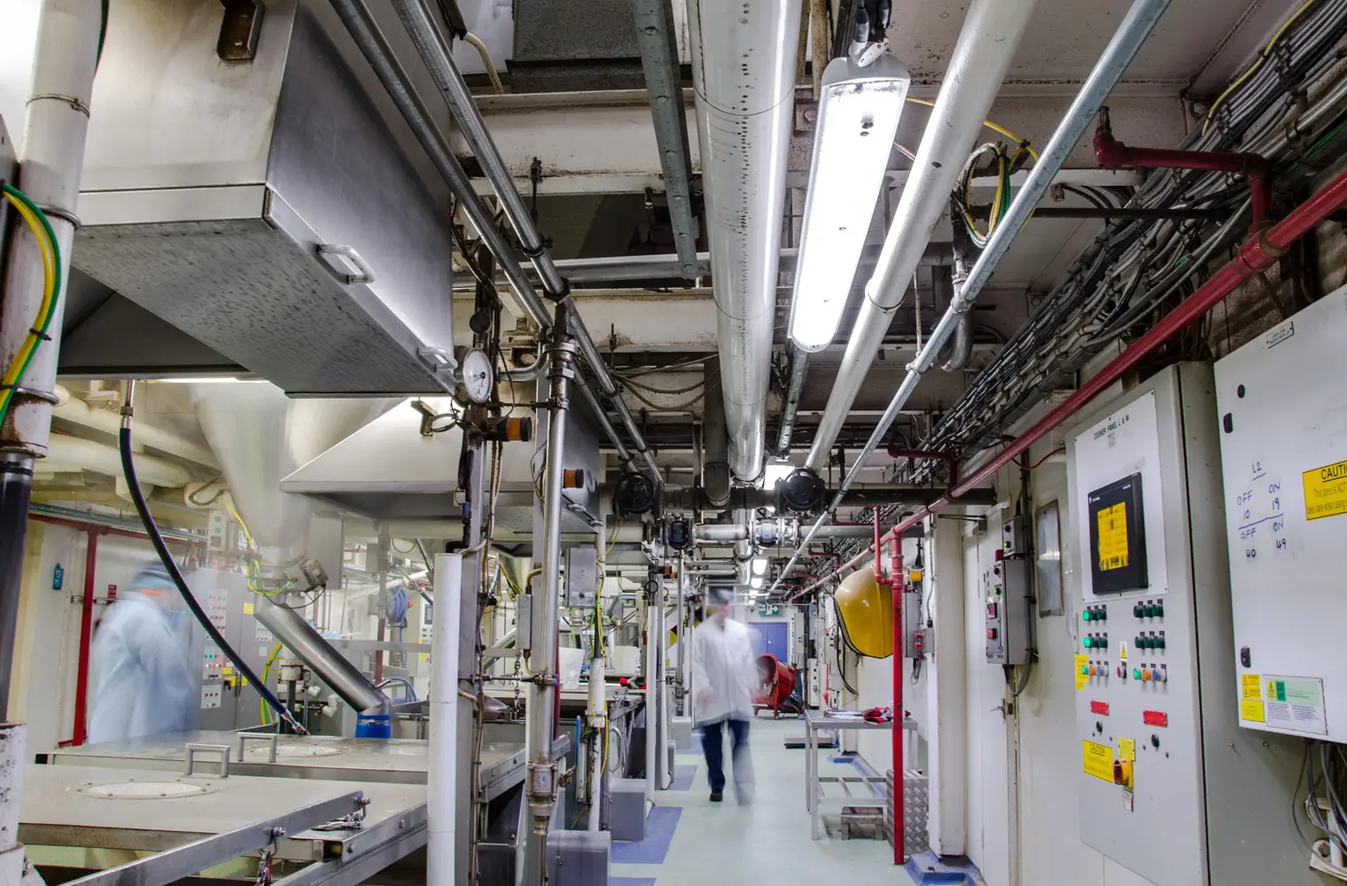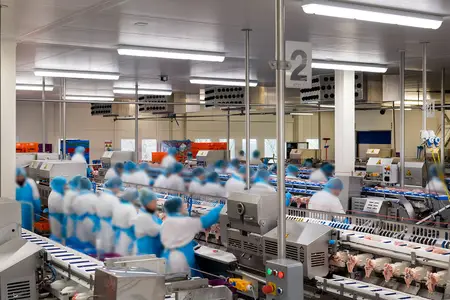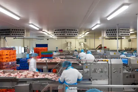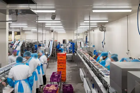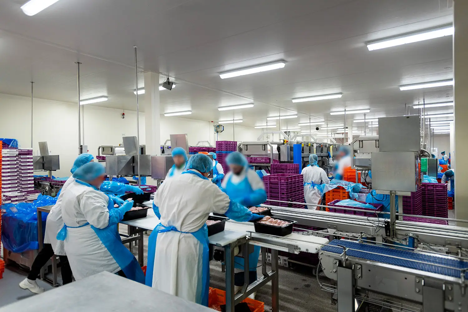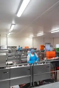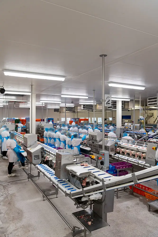 In areas where food is processed openly, the Food Hygiene (General) Regulations require that luminaires near the product be housed in an enclosure which prevents the lamp or any part of the luminaire accidentally falling into the product.