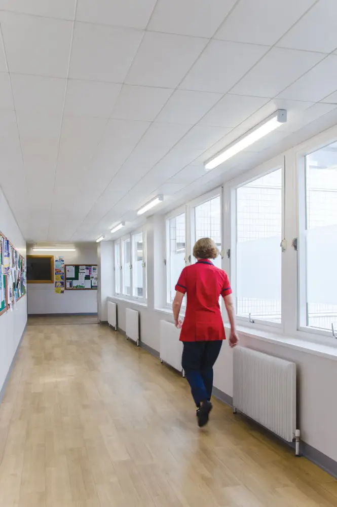 Many corridors benefit from good daylight levels, so lighting controls such as SmartScan can make significant energy savings by reducing output when the daylight level is good. SmartScan may also be configured to provide a lower illumination level at night, as recommended in CIBSE: SLL Lighting Guide 2 - Hospitals and Health Care Buildings.