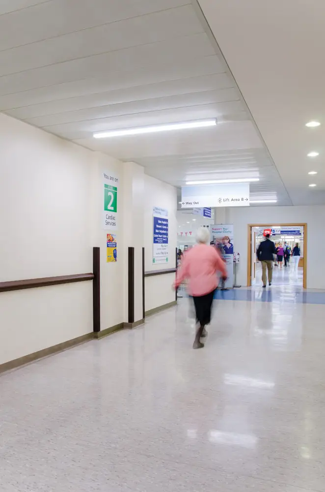 Hospitals are usually very large and complex. Internal transitory routes form the operational backbone of any hospital. Unfortunately the lighting requirement within these transitory corridors is often not recognised and they are treated purely as functional afterthoughts.