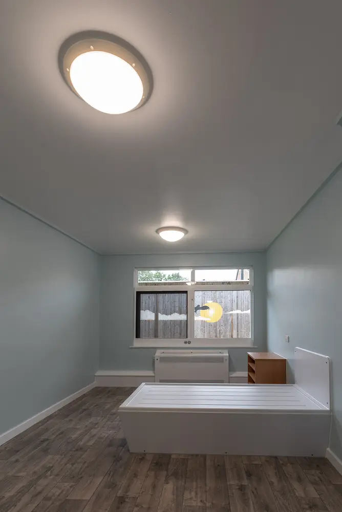 The modern approach for patient accommodation is to provide single rooms with en-suite bathrooms opposed to multi-bed wards. Single bedrooms allow patients space for personal everyday living and sleeping. General lighting and reading lighting should be provided and aim to create a domestic/hotel feel. The luminaires should be robust and classified as anti-ligature as staff may not be present. Manual control with dimming can enhance the domestic ambiance by providing user control over their environment. The Eco Touch AL can be used to provide pre-set dimming levels plus manual override from outside the bedroom.