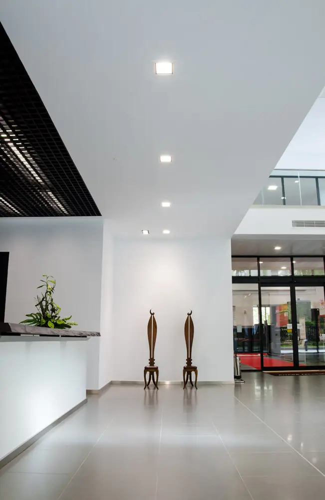Reception areas need to create the right impression, so the lighting should be carefully selected to achieve a welcoming, pleasant environment.