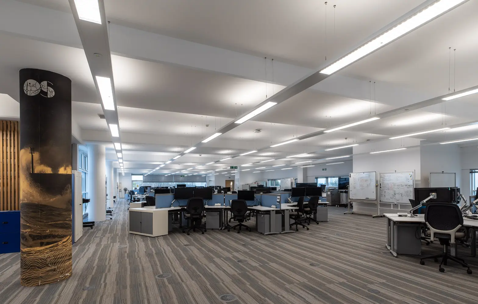 Thorlux Lighting was asked to replace the existing luminaires with an installation that would both complement the architecture of the building while providing a low energy and minimal maintenance lighting solution. The building comprises of open plan occupied office space over four floors, data centre, plant rooms, roof space and walkways.