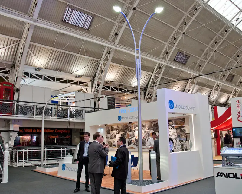 Thorlux Lighting exhibited at The ARC Show 2011 at the Business Design Centre, London. To mark the company's 75th anniversary the stand was designed to illustrate Thorlux's history and heritage alongside the latest developments in LED luminaires. The Thorlux Design and Smart External LED luminaires were positioned in key places throughout the stand. Taking centre stage was the ground breaking new Folio LED area floodlight which generated a great deal of interest with its contemporary design and energy saving potential.