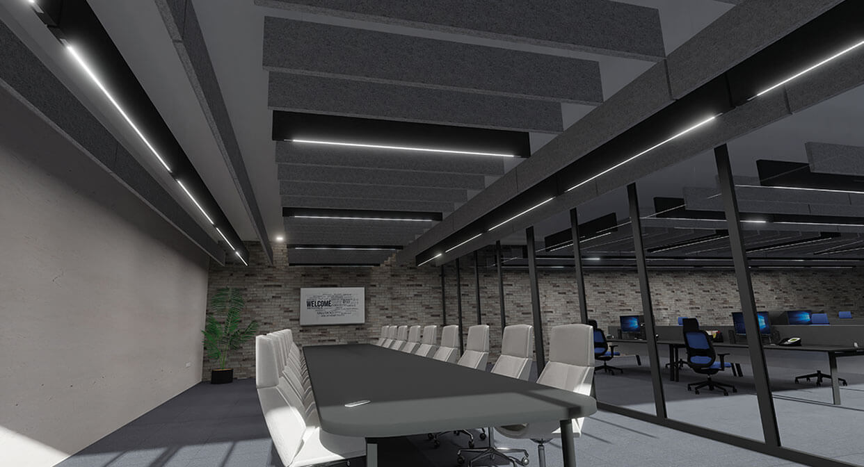 Luminaire layouts can limit the available locations for acoustic ceiling material and vice-versa. By combining the two functions together, a Flexbeam solution can be used to declutter the ceiling and reduce the overall cost of the installation.