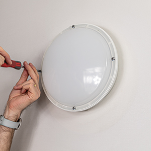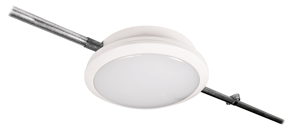 The plain version, for wall or ceiling mounting, provides a 360° light distribution. This version can be semi-recessed using an optional recessing bezel which may be preferable for aesthetics where a shallower install is required, or to match an existing style.