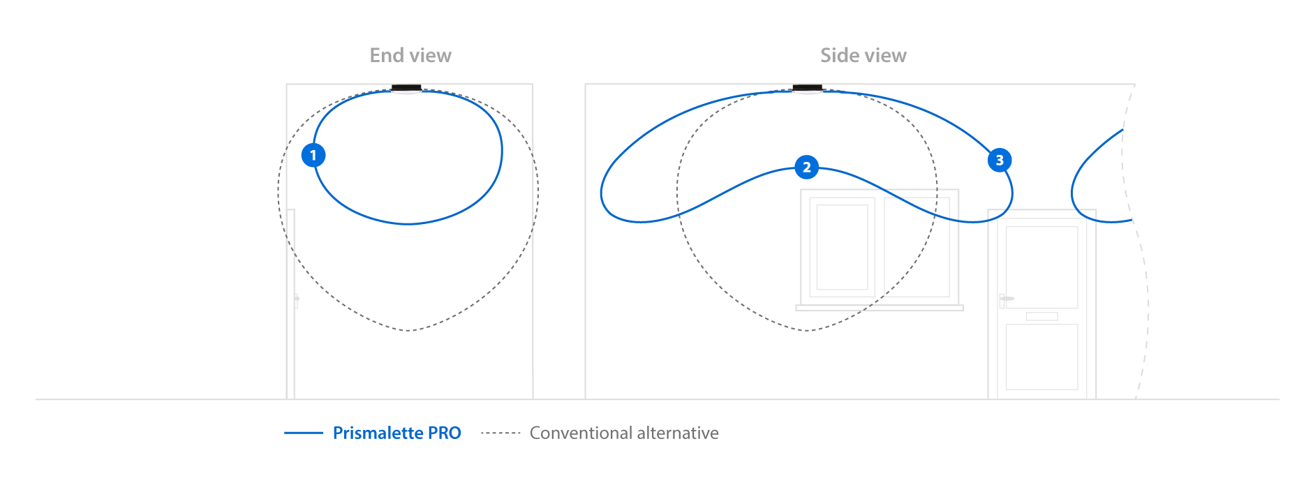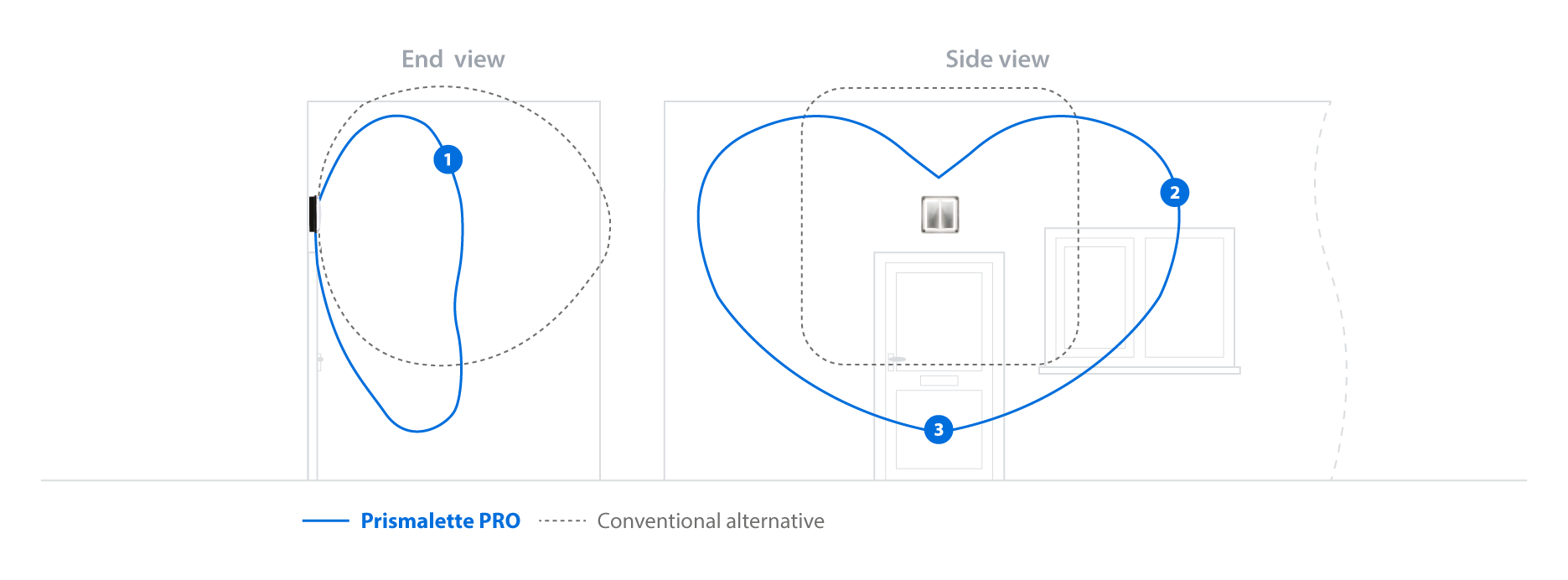 The Prismalette PRO produces a security beam providing an illumination boost that is closer to the doorway than from a conventional luminaire. This improves facial recognition of doorstep callers, increasing the feeling of security for residents.
