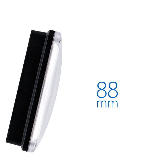 The 3mm thick polycarbonate cover is shallow and unobtrusive. The strong high pressure die-cast LM2 aluminium body is deep enough to accept conduit entry and is full polyester powder finished black as standard with white as an option. With a high impact rating of IK10 and IP66 ingress protection rating the Prismalette PRO is suitable for the most demanding of environments.