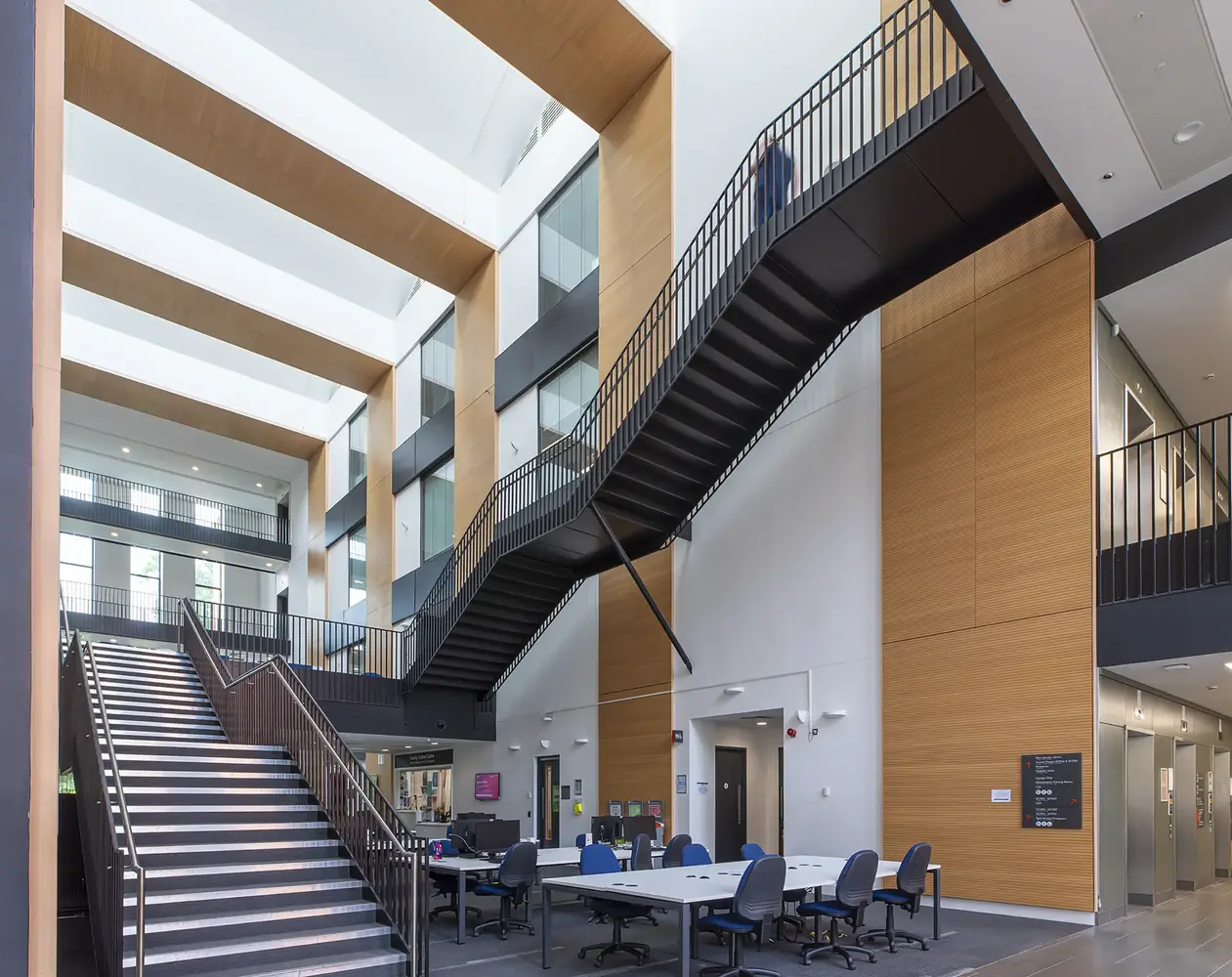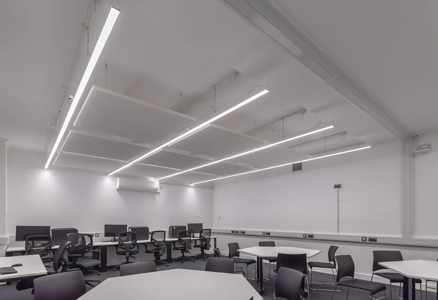 The older sections of the Seacole building were predominantly lit with old fluorescent 600x600 fittings across four floors. Thorlux predominantly upgraded these areas with modern Hi-Style LED luminaires, now controlled by the SmartScan Lighting management system. The replacements were completed on a point-for-point basis, but with updated layouts as necessary to meet British Standards requirements and the current use of the spaces.
