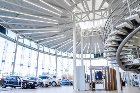 Bentley Motors Limited is a British company that designs, develops, and manufactures luxury motor cars which are largely hand-built. Now based in Crewe, England, Bentley was founded by W. O. Bentley on 18 January 1919 in Cricklewood, North London. Their Leicester showroom has recently undergone a complete refurbishment including the addition of Thorlux LED luminaires.