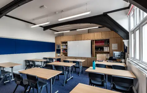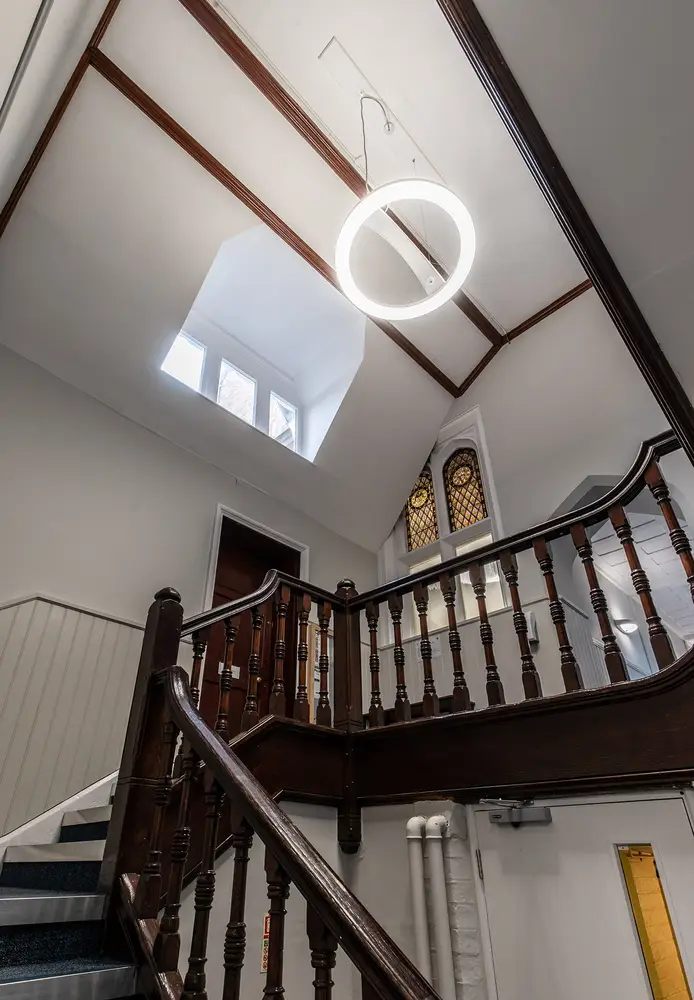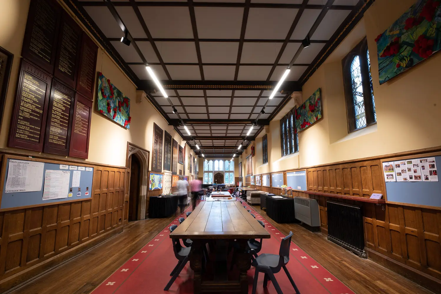 Zipline, combining architectural impact, longevity and supreme efficiency, was the perfect choice for the long refectory rooms . The self-contained pre-wired trunking and LED lighting system offer unparalleled flexibility in terms of lighting layout and scheme design.