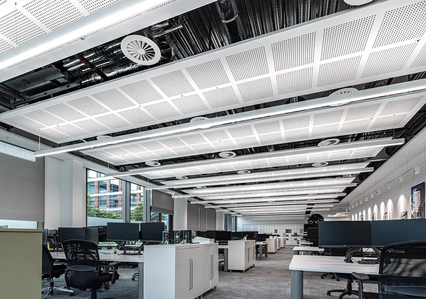 Thorlux Hi-Bar luminaires combined with the Smartscan wireless lighting management system have been installed at the BuroHappold offices in Leeds. Slim and elegant, the Hi-Bar combines supreme efficiency and longevity with design flexibility. Installations using SmartScan can deliver energy savings in excess of 70% compared with conventional technology. Integral sensors monitor ambient light and presence, control output to the correct level, dim and switch when there is sufficient daylight and illuminate only when the area is occupied.