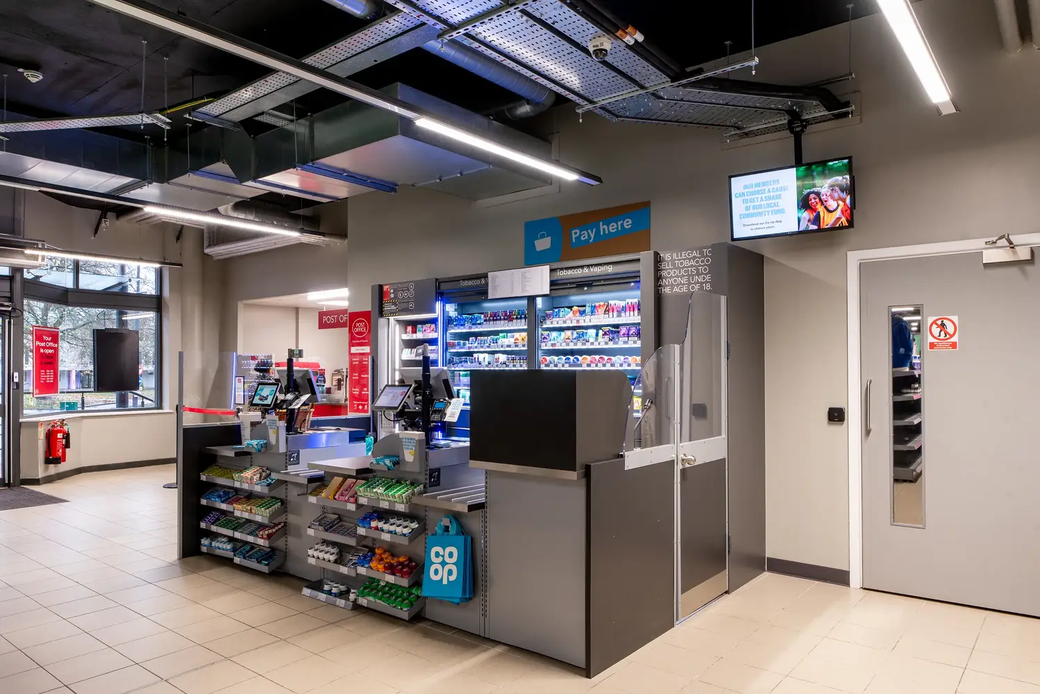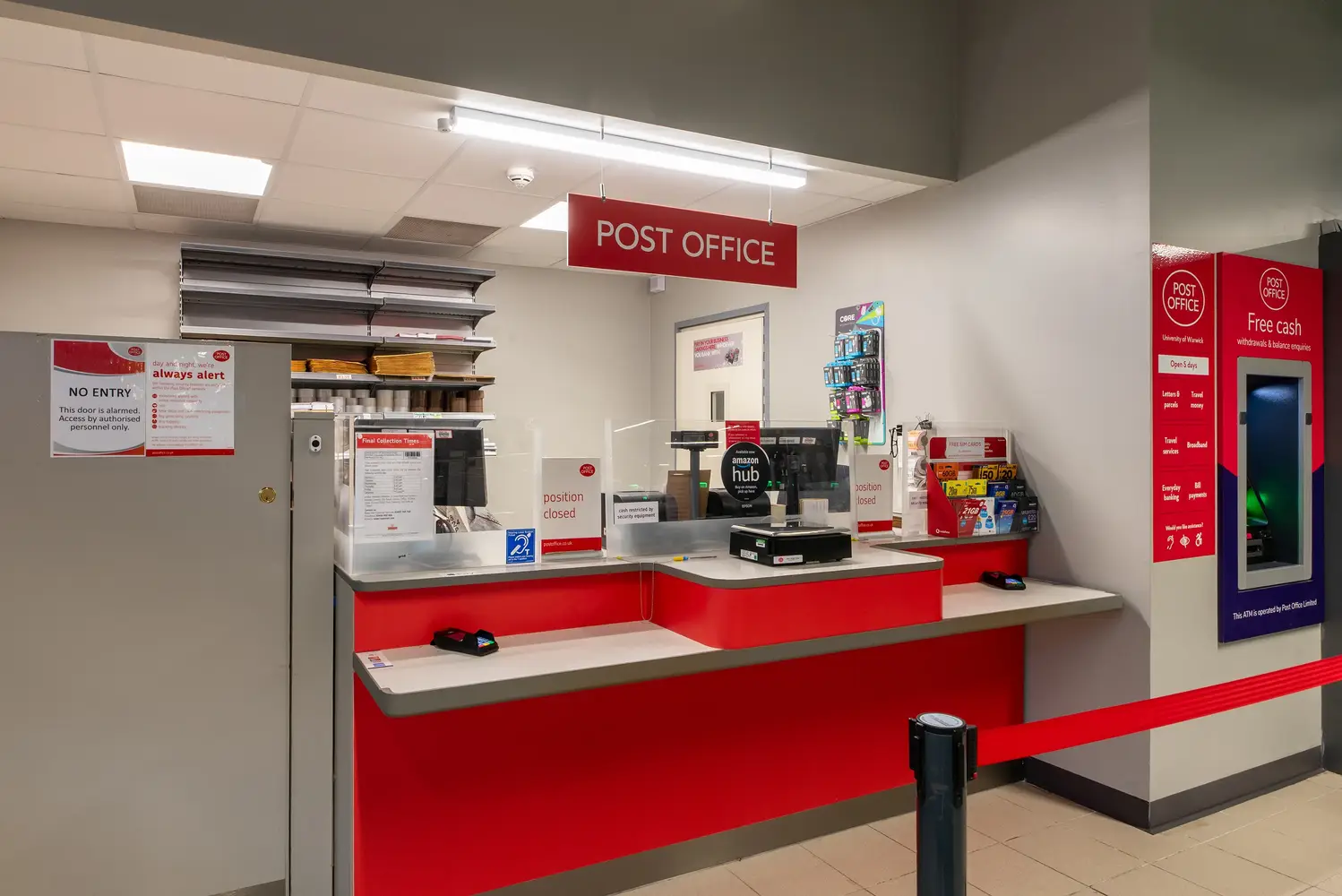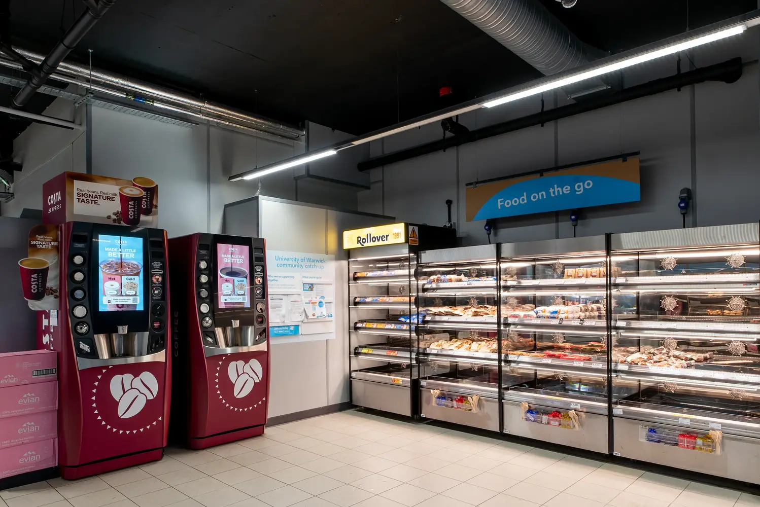 The on-campus Co-Op franchise supermarket at the University of Warwick provides students, staff, and visitors with fresh produce, essential groceries, and a wide selection of favourite foods. The store also houses a small Post Office station.