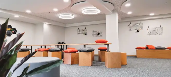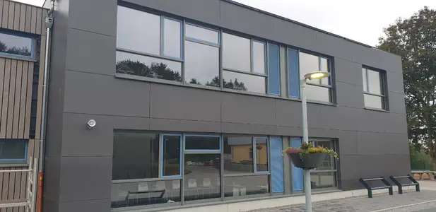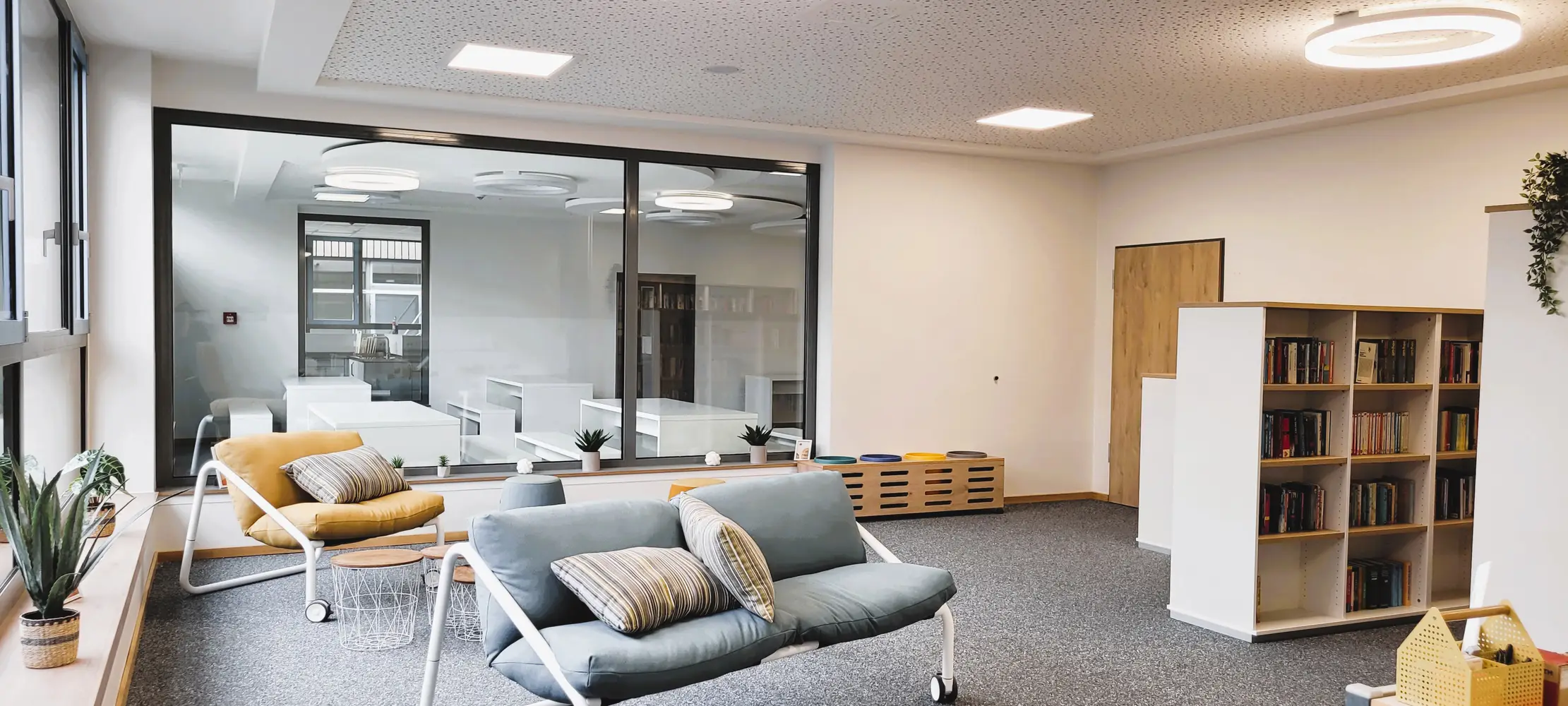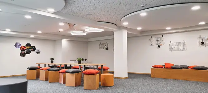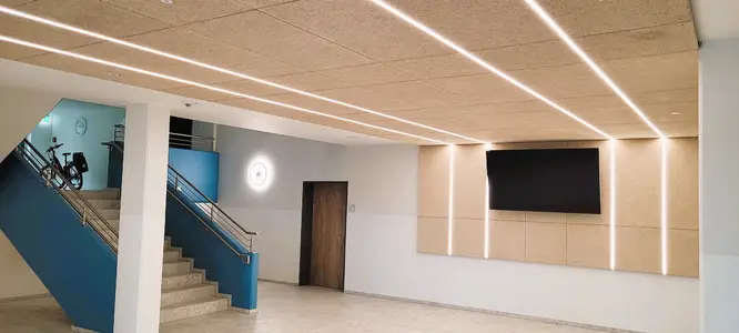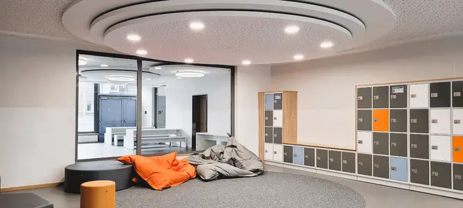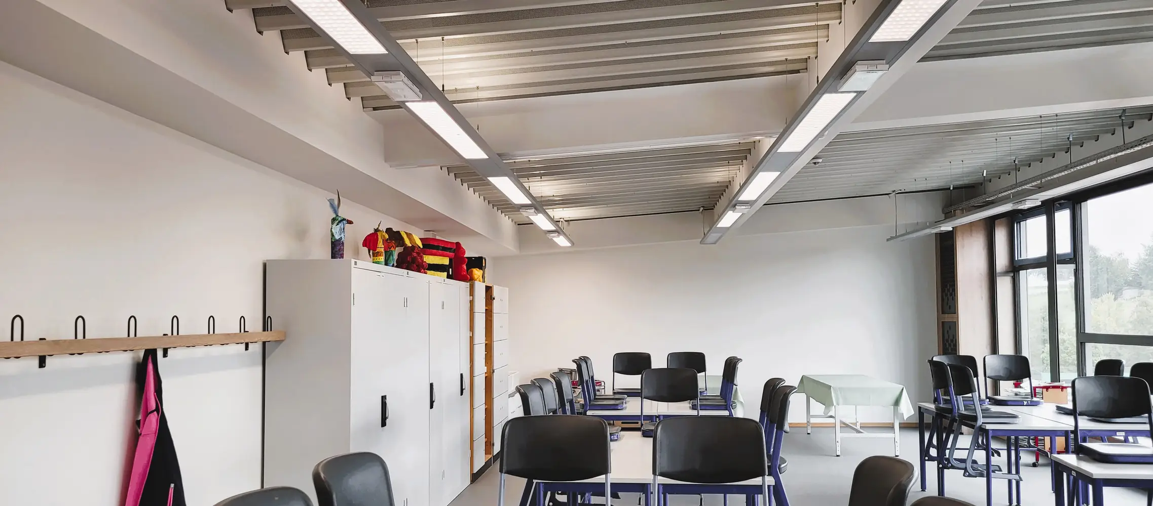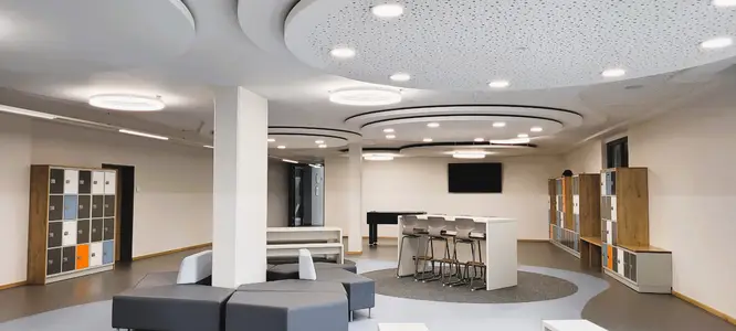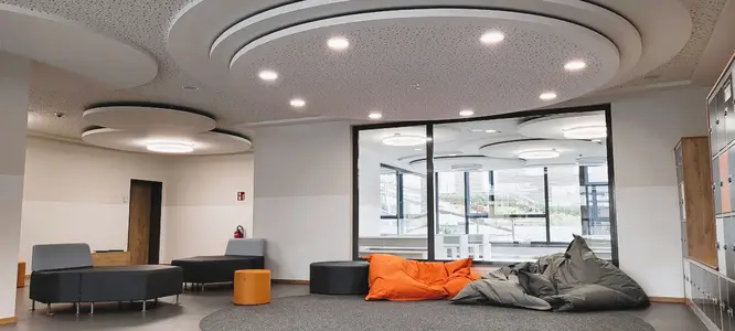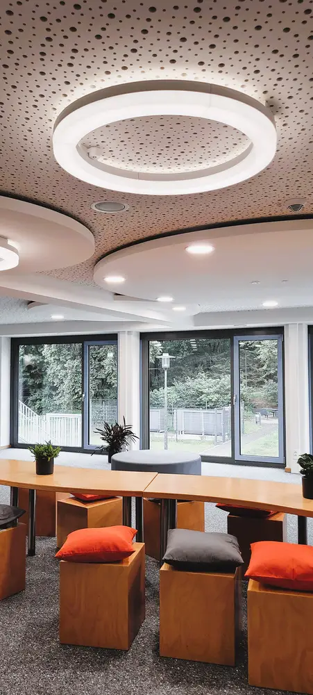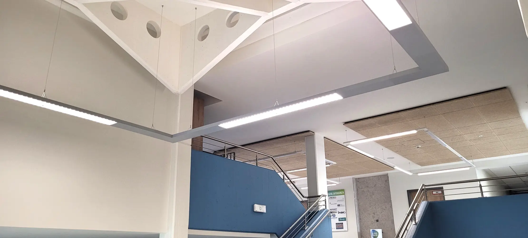 After four years of construction, classes began in the rebuilt "Klima-Campus" of Lichtenau Secondary School in October 2023. The 30-classroom, 6,300 m² school building uses a host of environmentally friendly technology, notably energy-efficient LED luminaires and the SmartScan lighting control system from Thorlux Lighting.