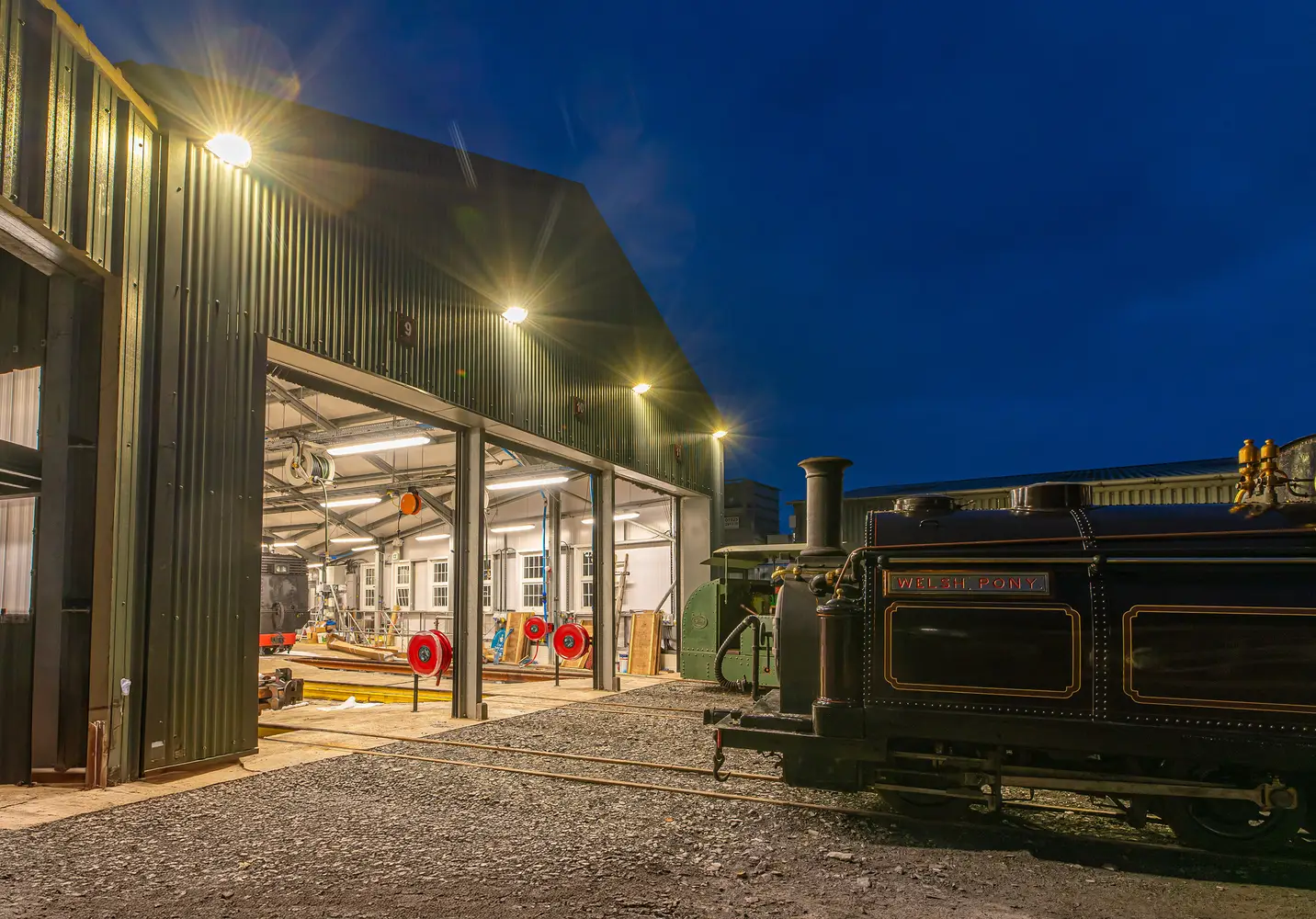 Besides developing resources and storytelling features for visitors, the Boston Lodge project has restored five historic buildings and established four new ones, including renovating the existing cottages to provide improved facilities and recreating a historical waggon repair shed. With high-quality lighting in place, Boston Lodge is ready for the next generation of visitors to discover.