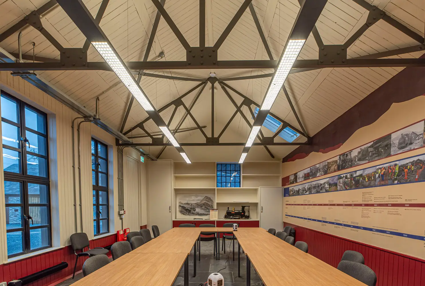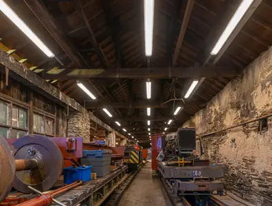 As part of a significant regeneration project, partially supported by the National Lottery Heritage Fund, Thorlux Lighting worked with Ffestiniog and Welsh Highland Railways for two years to comprehensively re-light buildings and outdoor spaces with a mixture of energy-efficient LED luminaires. Appropriately, a number of the luminaires used include the spun-steel Thorlux Heritage Traditional luminaires, which combine modern LED lamp technology with a vintage 1930s design and high-quality vitreous enamel finishes. Furthermore, high-performance Thorlux Realta and Realta Micro luminaires have illuminated building perimeters across the site, chosen for their performance and minimal upward light. The workshop areas utilise heavy-duty, corrosion-resistant Pitlight luminaires for use beneath carriages and engines.