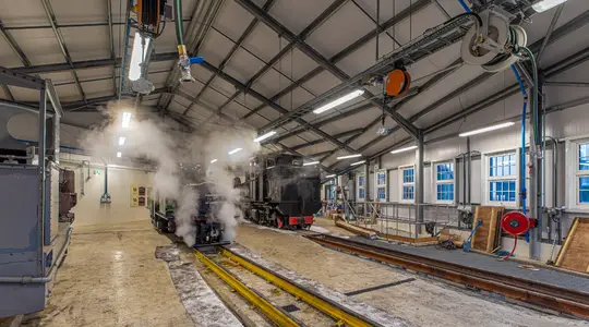 Boston Lodge is the location of the railway’s main workshops, engine sheds and works offices. Within the works are two cottages, used for various purposes by railway staff and volunteers.