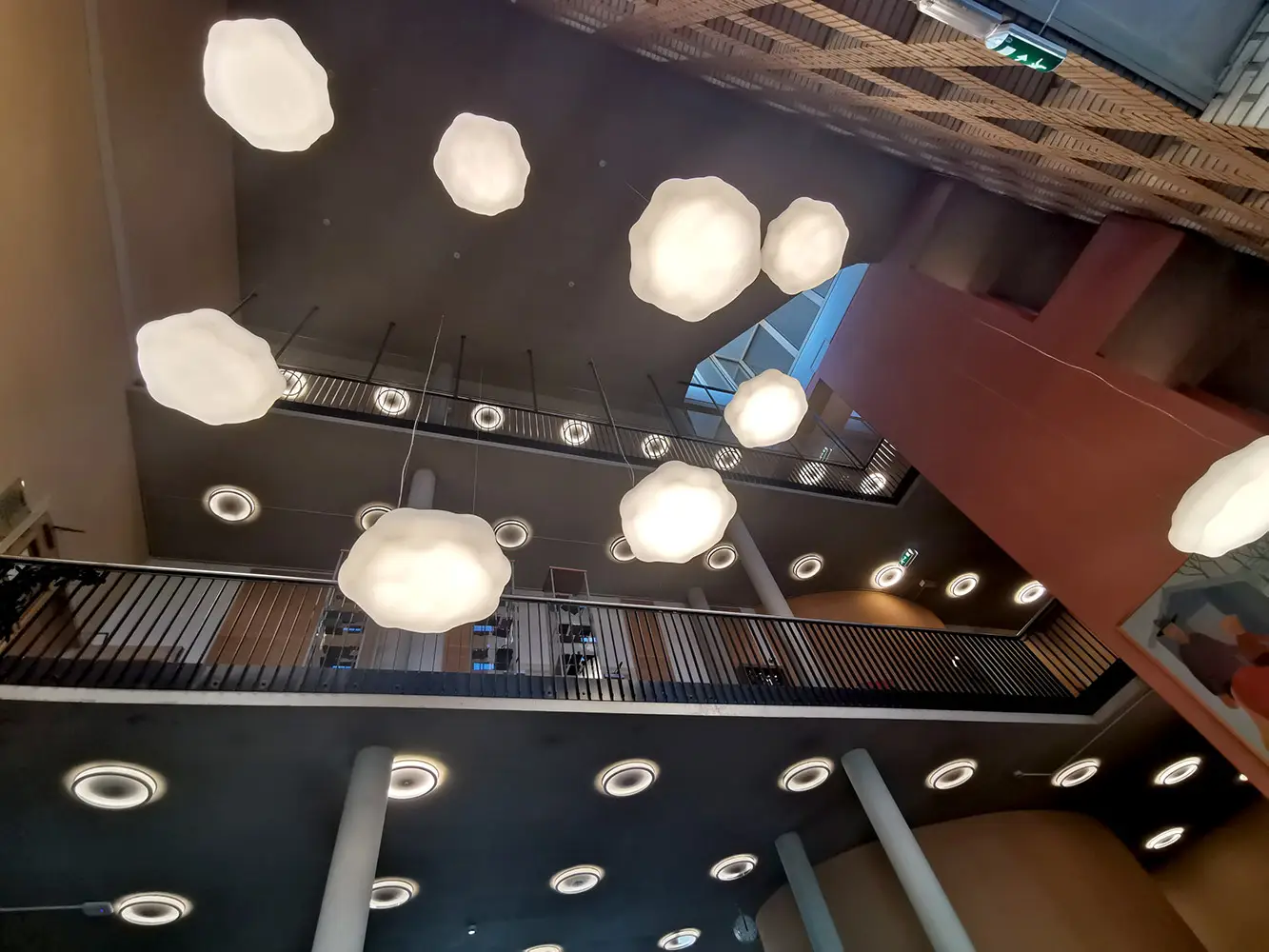 The Thorlux Cloud is a suspended cloud feature luminaire with very high efficiency and long life. The Clouds at Kampen Skole use ColourActive technology for automatic colour temperature control. The daily ColourActive cycle is configured via the SmartScan website. Preset regimes follow the natural daylight rhythm, or specific settings can be set and tailored as required. These settings are transferred to the ColourActive Gateway