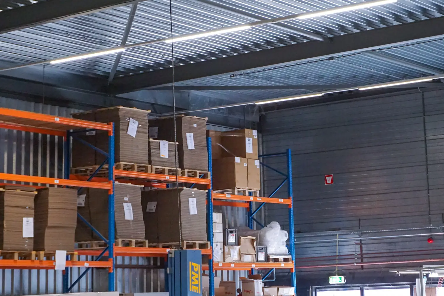 In the warehouse area, by replacing 2x58W fluorescent luminaires with energy efficient Solow LED and Solow XLED luminaires the number of points required was greatly reduced. This resulted in much lower capital and installation costs. The addition of high efficiency Zipline luminaires in the manufacturing area also allowed for the removal of existing task lighting over production benches.