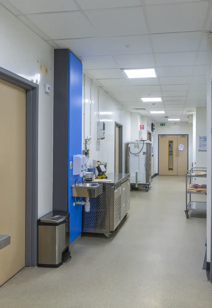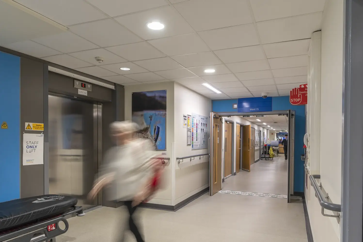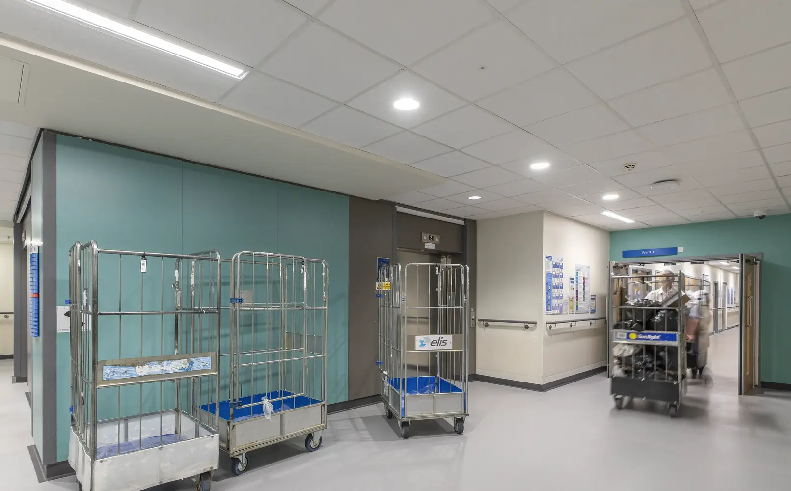 Wards and patient recovery areas demand a high level of cleanliness and hygiene; for this reason, Cleanline recessed luminaires with low-glare diffusers have been used in these areas. The tamper-proof cover and FDA-approved silicone gasket help ensure the luminaire remains hygienic. Extensive installation trials were carried out with the hospital's infection control team to ensure the installation met with their exacting standards. Additionally, nearly 400 Medica bedhead luminaires have been installed, providing essential lighting for staff (compliant to BS EN 60598-2-25) and a comfortable level of light for patients.