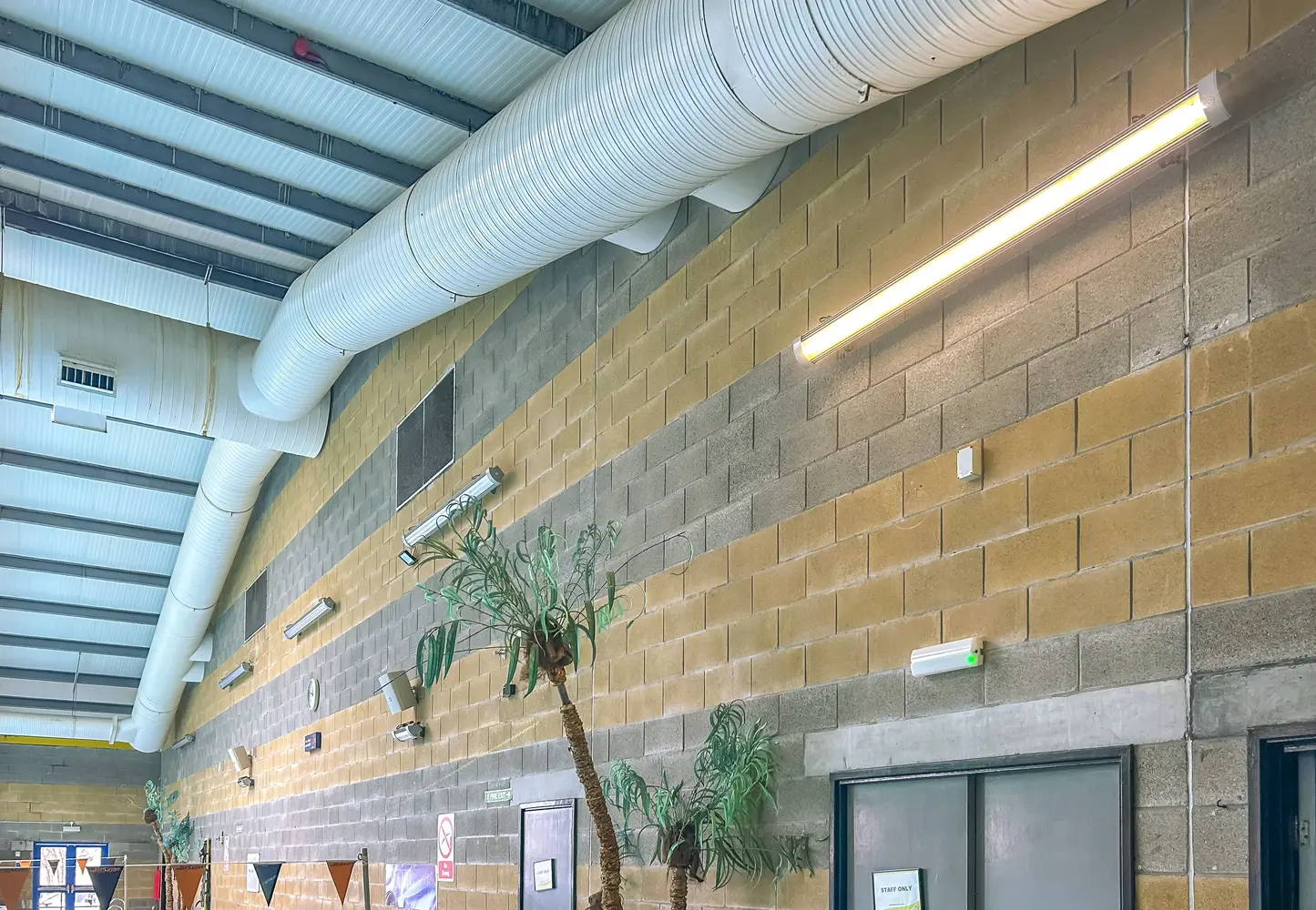 The pool area was lit with ageing DALI-operated Thorlux Solow first-generation LEDs that were beginning to fail from constantly running 12 hours a day since installation many years before. Energy costs were high, and ceiling height and the luminaires’ wall-mounted positions made finding a direct replacement difficult.