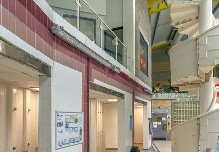 However, the Ryan Centre pool is notable for its large wall and ceiling windows, which raised the possibility of saving energy and reducing costs through intelligent lighting and daylight harvesting. Following discussions with the building operators, the existing fittings were taken down and returned to the Thorlux factory in the Midlands while the pool was closed for other works.