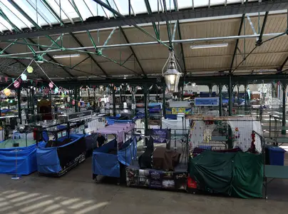 St George's Market is the last surviving Victorian covered market in Belfast. Built between 1890 and 1896, it is located on May Street, close to the River Lagan and the Waterfront Hall. The market was named the UK's Best Large Indoor Market 2014 by the National Association of British Market Authorities and was also voted the nation’s favourite Heritage project in the 2014 National Lottery Awards.