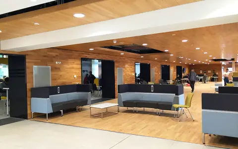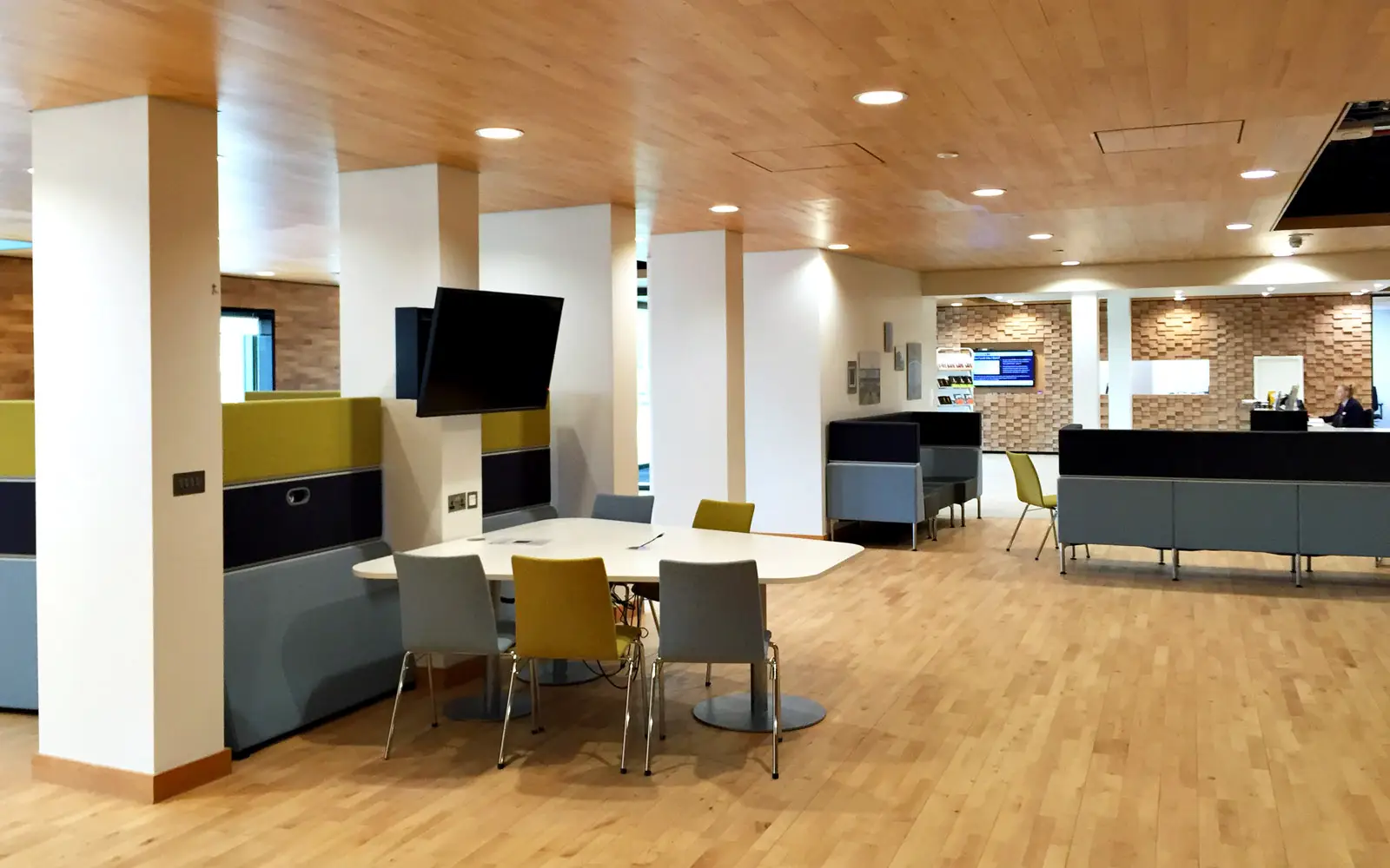 The hub sits within the quad space of the Hutton Building, and brings together all the essential student services, from the Campus Pharmacy and Medical Centre to the Students Union and Students Centre.