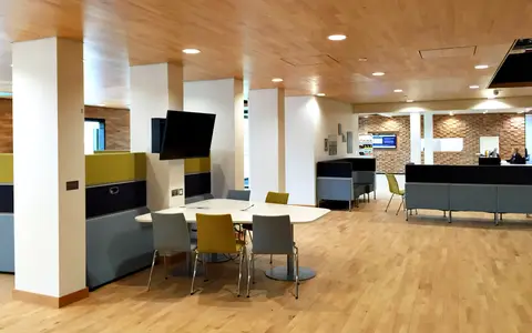 Prince Edward Hall and Hutton Hub form part of the University of Hertfordshire’s 2020 Estates Vision, providing a ‘granite box’ extension which slides into the existing buildings, creating a space for students and staff to work, meet, relax and eat.