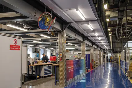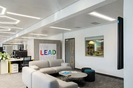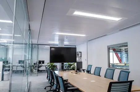 Thorlux recommended Hyline luminaires for the office areas. The Hyline is a high-quality edge-lit luminaire suitable for myriad ceilings, including SAS 120, 130 and 330 types. The homogeneously lit fire-retardant nanoprism diffuser aids compliance with LG7, and concealed air-handling vents allow airflow of up to 40 litres per second without any performance loss.